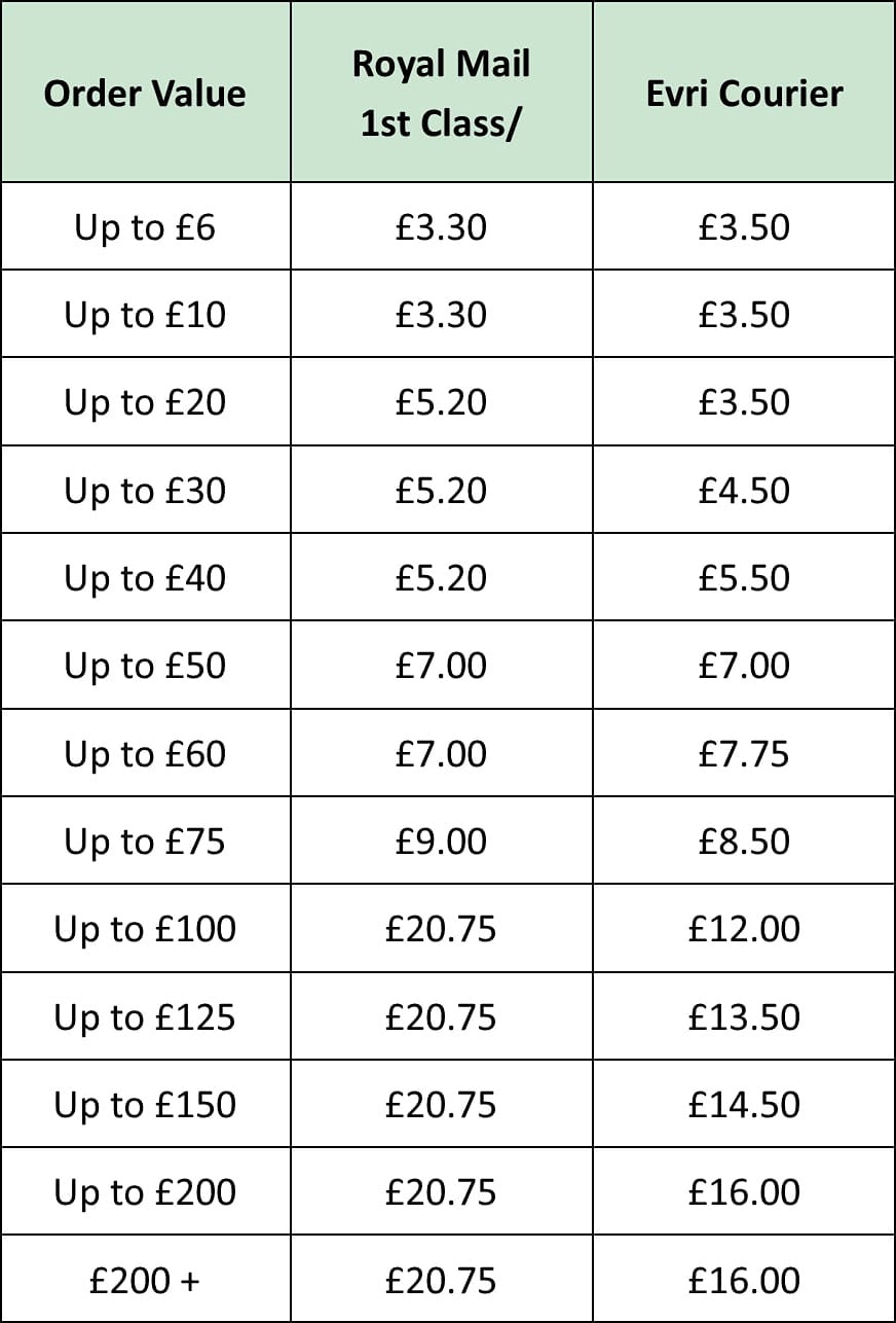 For our current postage rates, please see the table below.
